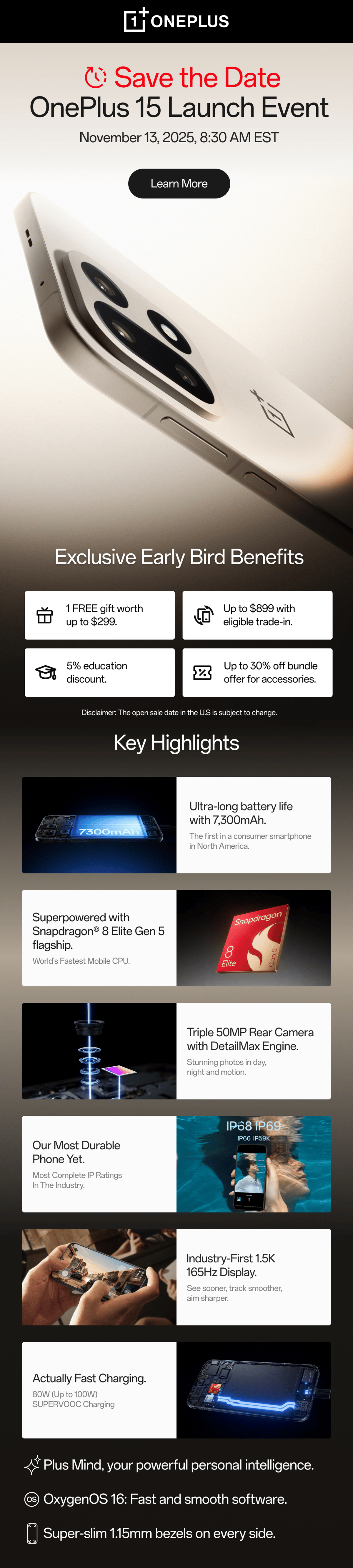 Save the Date! OnePlus 15 Launch Event! published on November 11, 2025 leave a reply Exclusive Early Bird Benefits. Subscribe Now! OnePlus USA Corp, 2479 E Bayshore Rd STE 120, Palo Alto, CA 94303 Unsubscribe Manage preferences Tweet Share Share Share Share Previous Post Next Post post written by: admiad